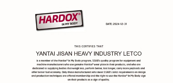 金山重工獲得瑞典Hardox鋼板授權(quán)資格企業(yè)